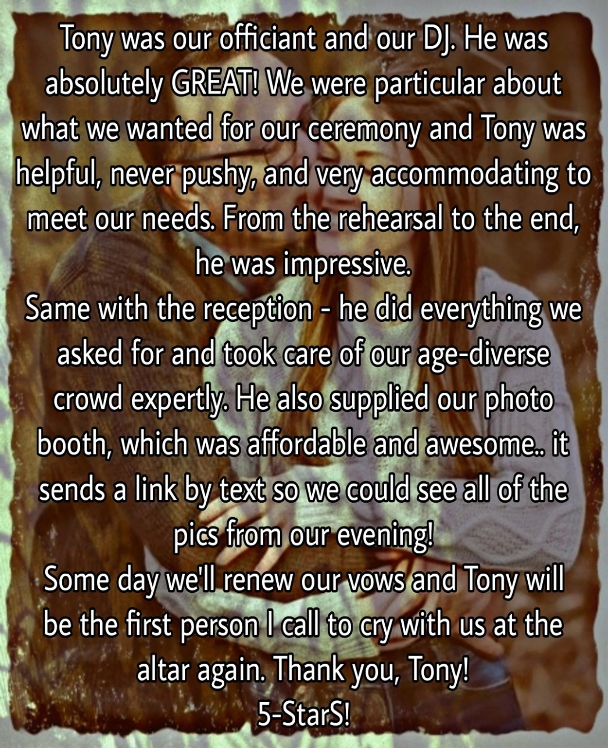 We are prepared to host a variety of occasions and events. We can provide Photo Booth, lights, sound and PA equipment to serve all of your needs. From your wedding to your birthdays!